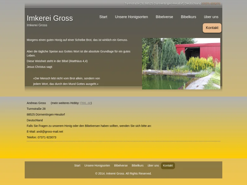 Die Imkerei Gross in Dürmentingen-Heudorf bietet Honigsorten aus eigener Imkerei, regional hergestellt und in der Qualität überzeugend. Zum Sortiment gehören … Weiterlesen …